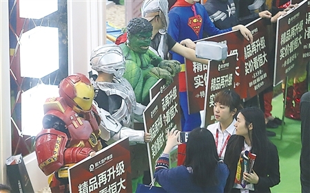 昨日,恒大地产便请来小蜜蜂,扮演成绿巨人、超人等超级英雄来举广告牌。光华安纳溪湖则请来模特装扮成从童话中飞出来的花仙子,在房交会盘旋,引来不少顾客前来合影。而鸿笙苑则请来杨模特,扮演成王子、公主,也吸引不少人驻足。
